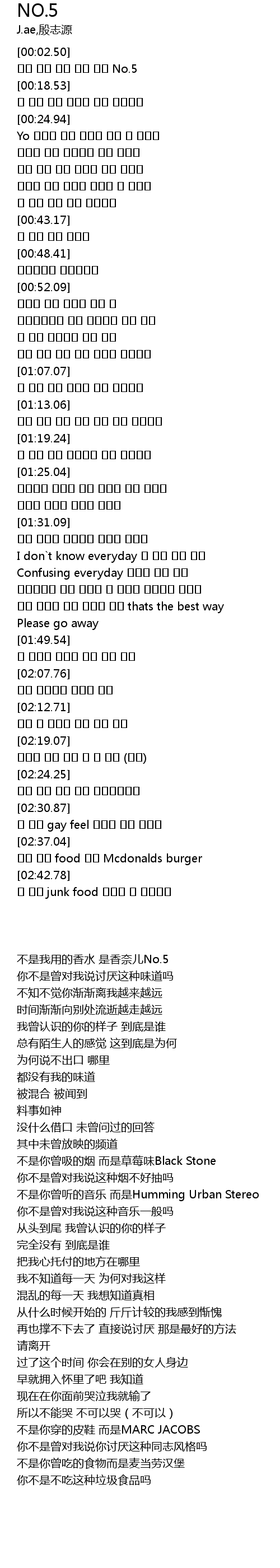 | [00:14.11] | 不是我用的香水 是香奈儿No.5 |