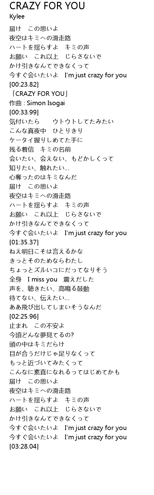 CRAZY FOR YOU 歌词
