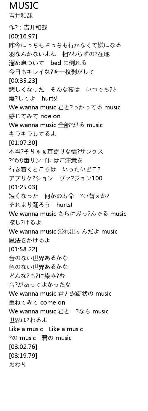 | [01:41.78] | We wanna music さらにぶっ?んでる music |