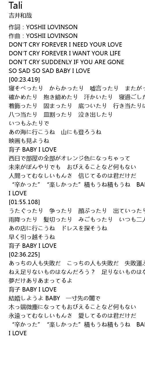 | [00:02.181] | zuò qǔ: YOSHII LOVINSON |