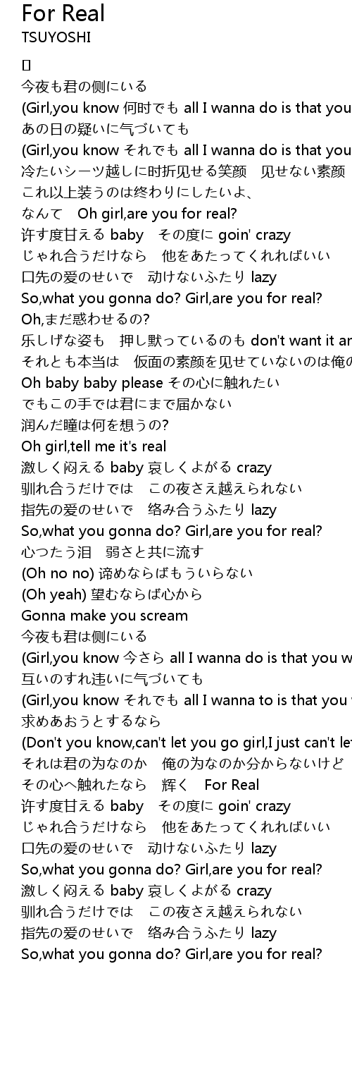 | (Girl,you know 今さら all I wanna do is that you wanna do) | |
