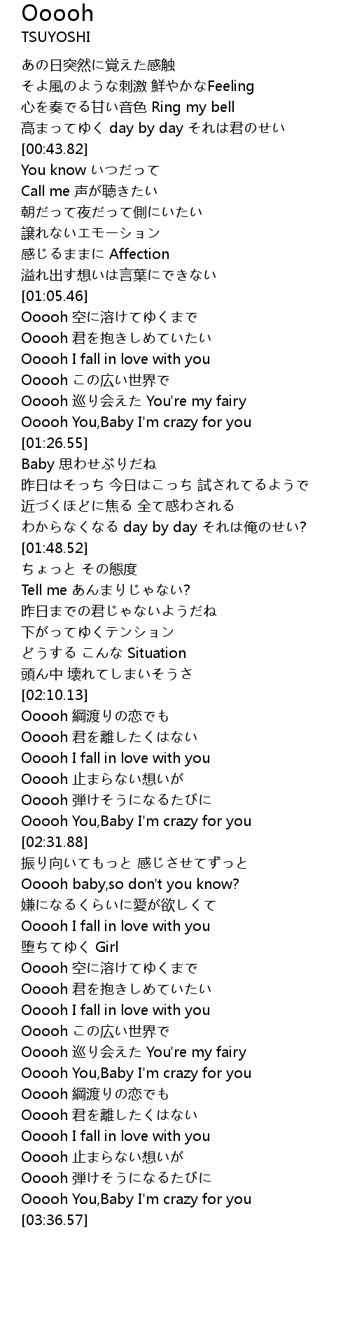| [03:31.02] | Ooooh You, Baby I' m crazy for you |