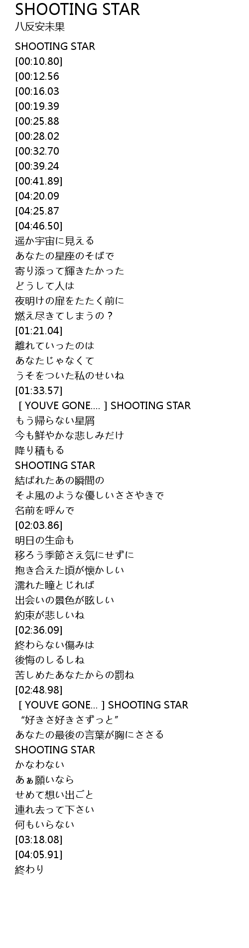 | [03:51.07][00:25.88] | SHOOTING STAR |