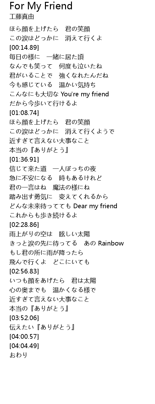 | [00:52.49] | こんなにも大切な You're my friend |