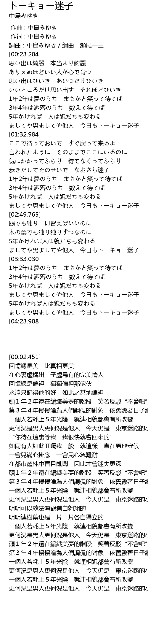 | [03:59.873] | 更何況是男人更何況是他人 今天仍是 東京迷路的小孩 |