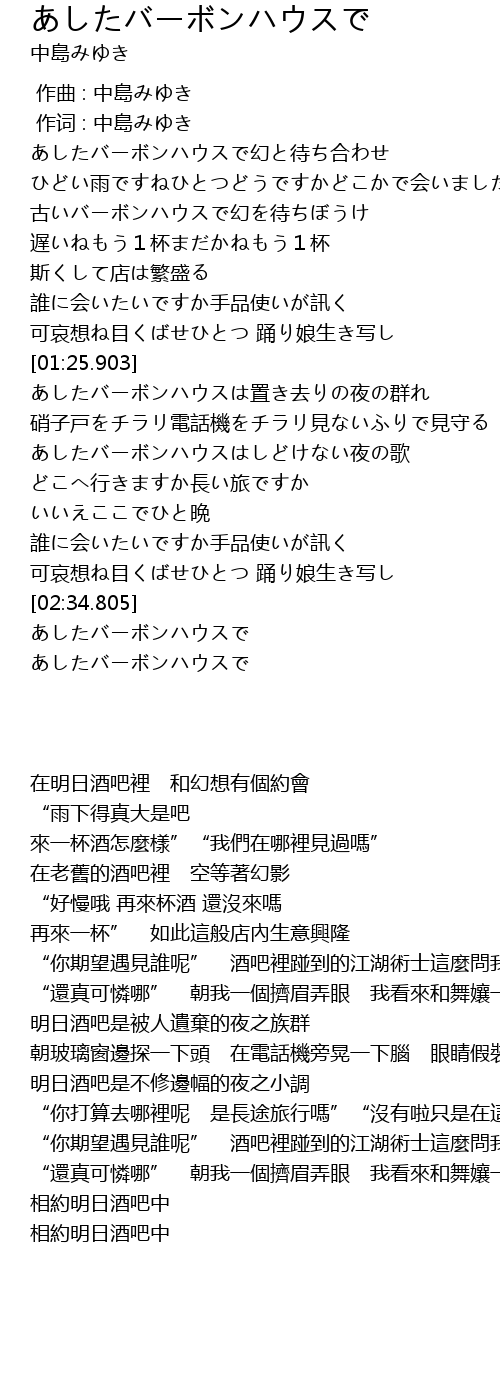 | [01:54.551] | あしたバーボンハウスはしどけない夜の歌 |