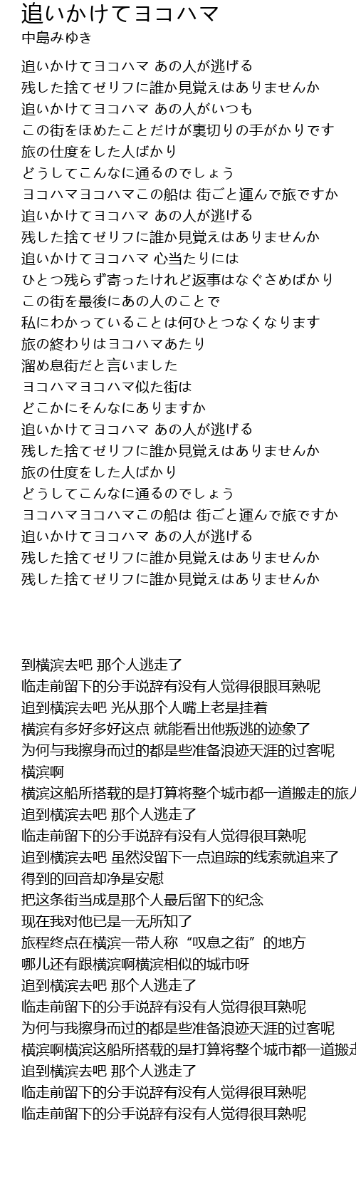 | [00:52.27] | 追いかけてヨコハマ あの人がいつも |