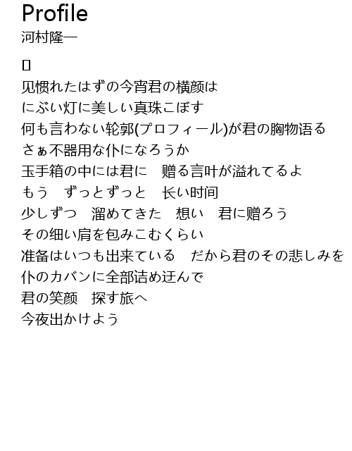 | 何も言わない轮郭(プロフィール)が君の胸物语る | |