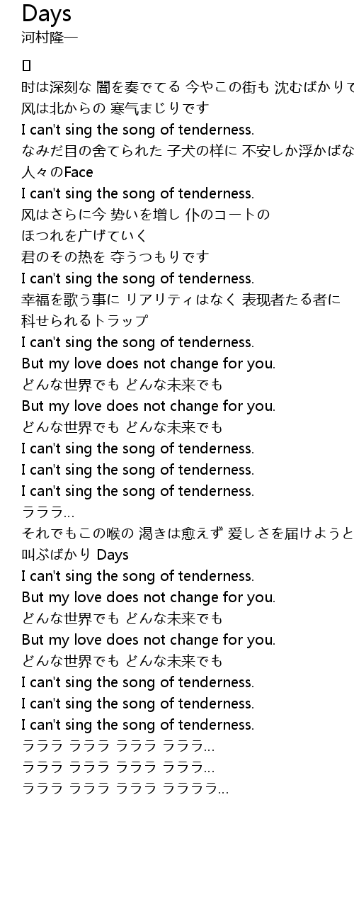 | それでもこの喉の 渴きは愈えず 爱しさを届けようと 叫ぶばかり Days | |