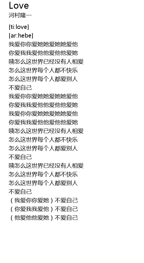 | [00:38.919] | 我爱你你爱她她爱她她爱他 |