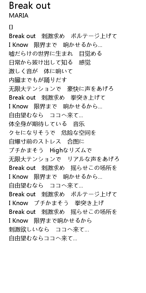 | Break out 刺激求め 拳突き上げて | |
