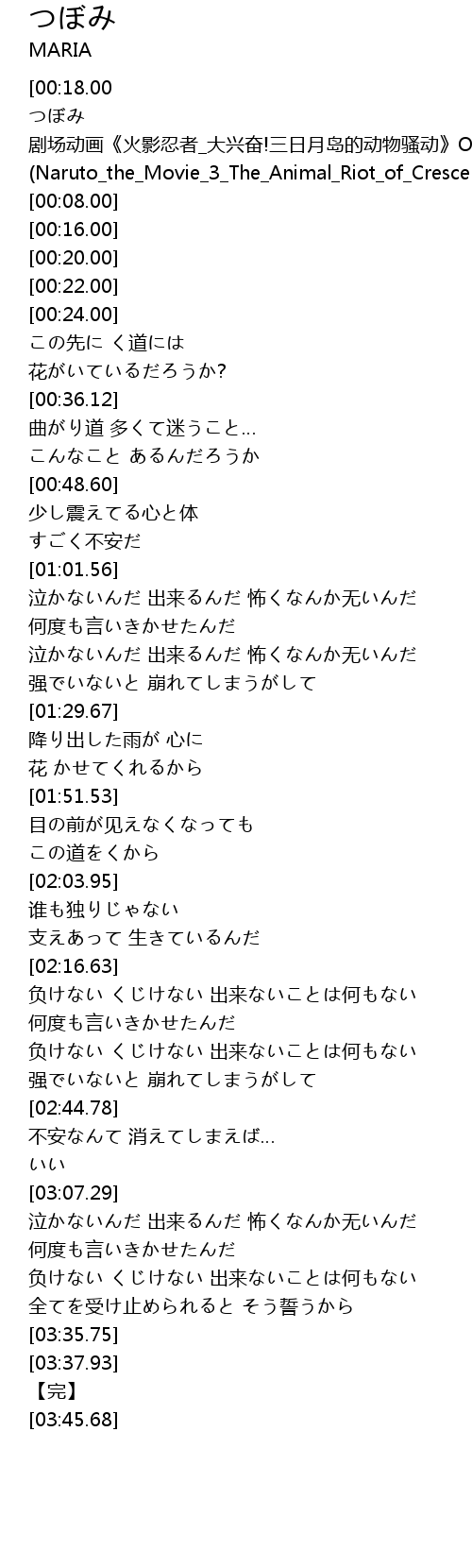 | [03:20.30] | 负けない くじけない 出来ないことは何もない |