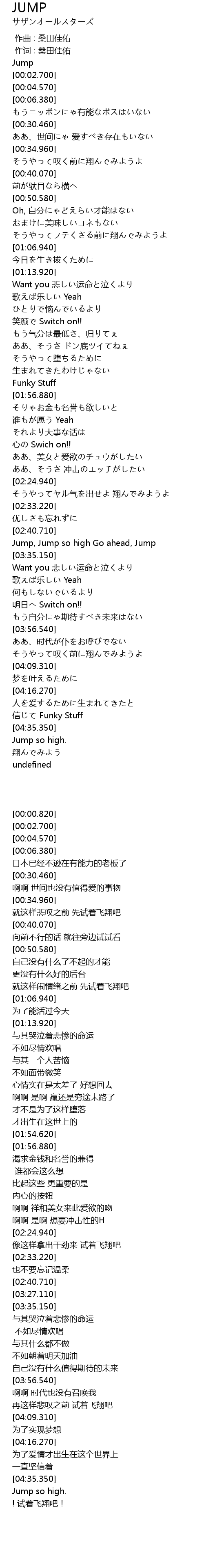 | [00:00.273] | 作词 : 桑田佳佑 |