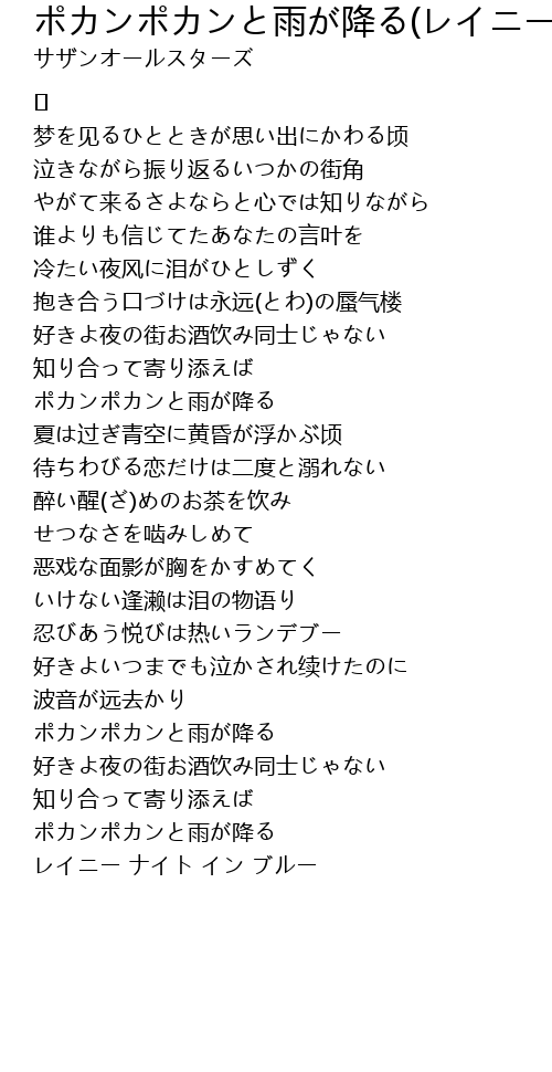 | 歌曲 | ポカンポカンと雨が降る(レイニー ナイト イン ブルー) |