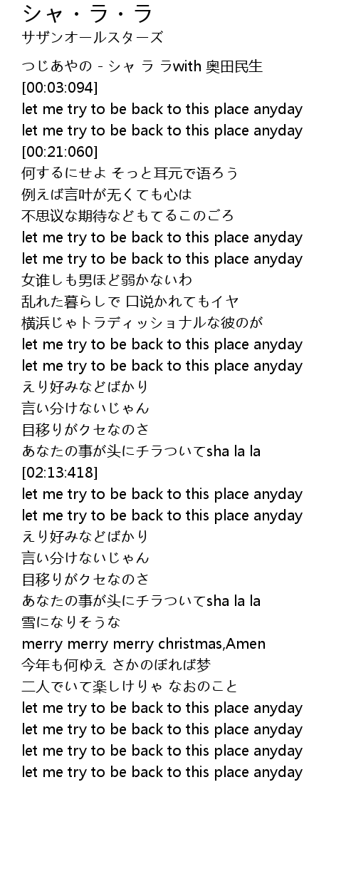 | [00:01:458] | つじあやの - シャ ラ ラwith 奥田民生 |