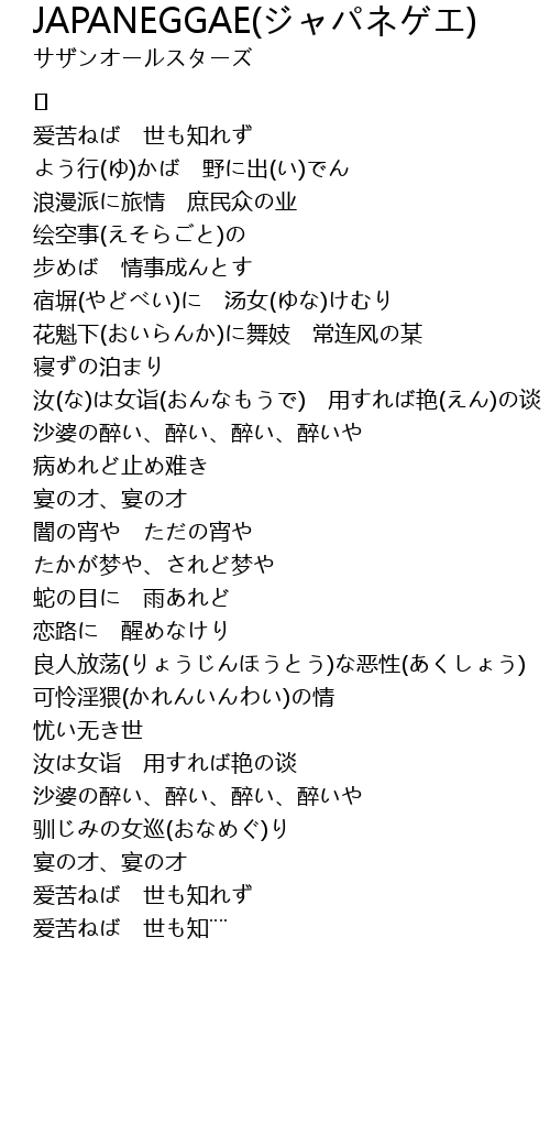 | 歌曲 | JAPANEGGAE(ジャパネゲエ) |