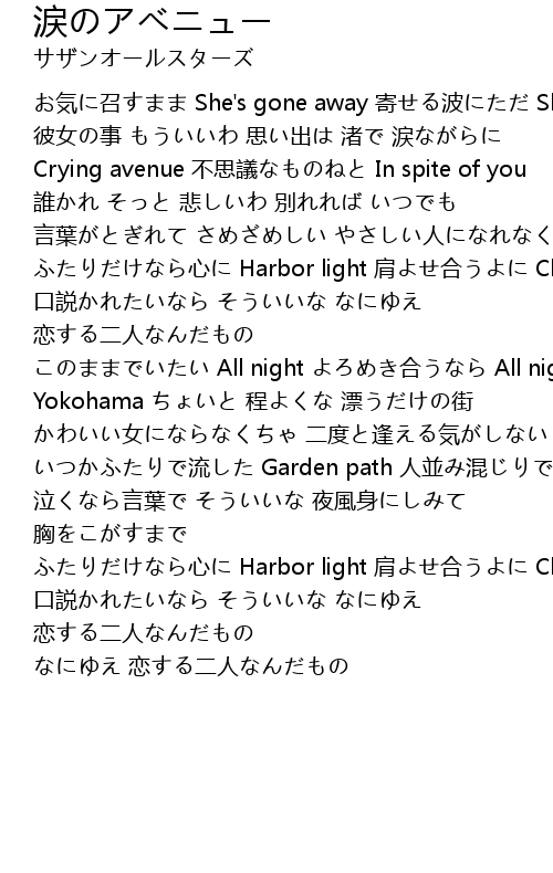 | 歌曲 | 涙のアベニュー |