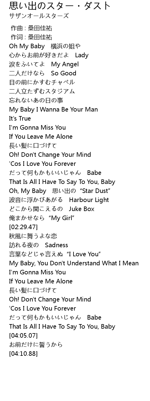 | [01:51.70] | Oh, My Baby 思い出の“Star Dust” |