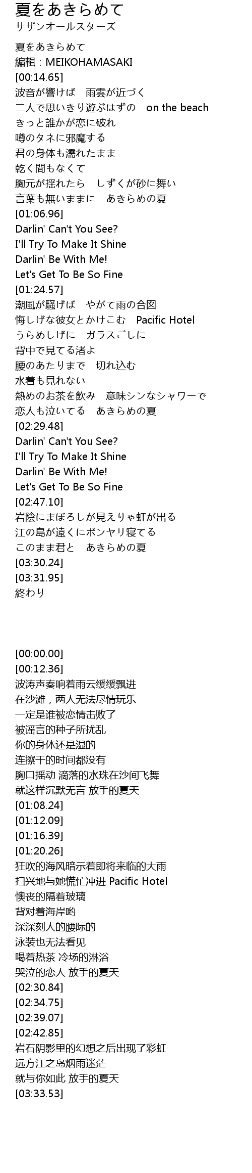 | [00:12.36] | 編輯:MEIKOHAMASAKI |