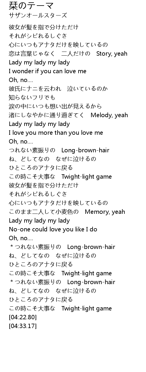 | [03:19.45] | *つれない素振りの Long-brown-hair |