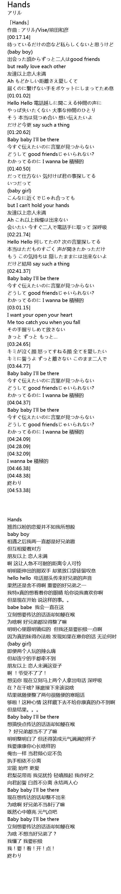 | [00:01.14] | 「Hands」 |