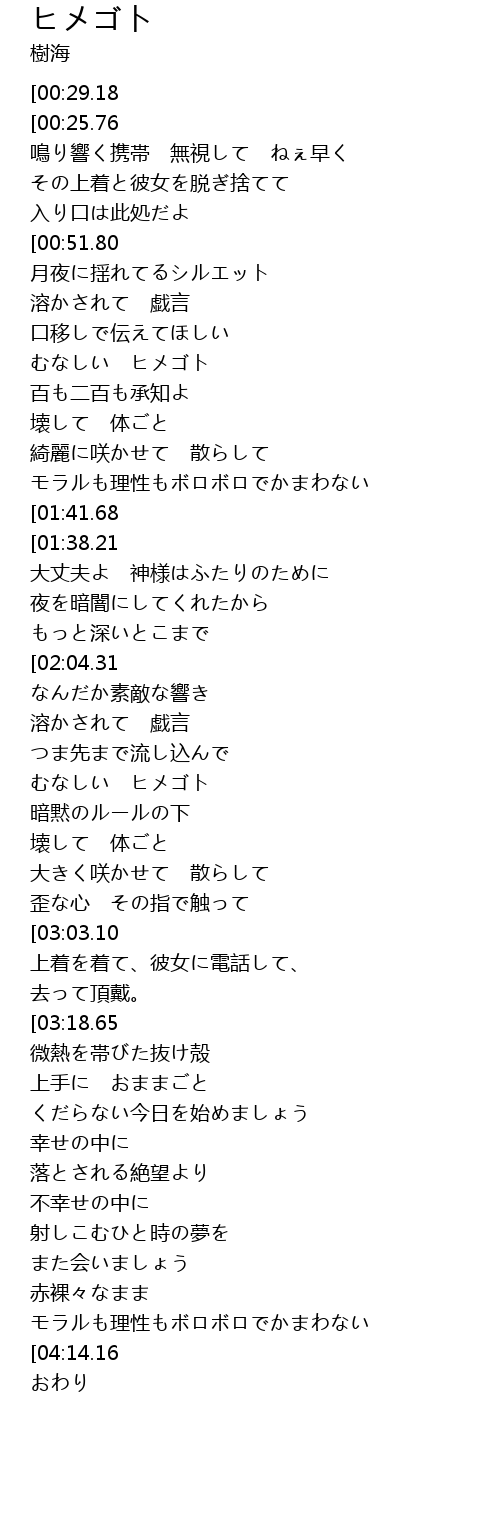 | [03:18.16][03:18.65] | ふたりの ヒメゴト |