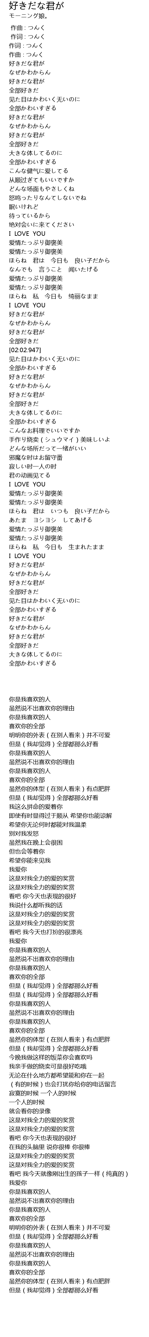 | [02:16.150] | 全部好きだ |