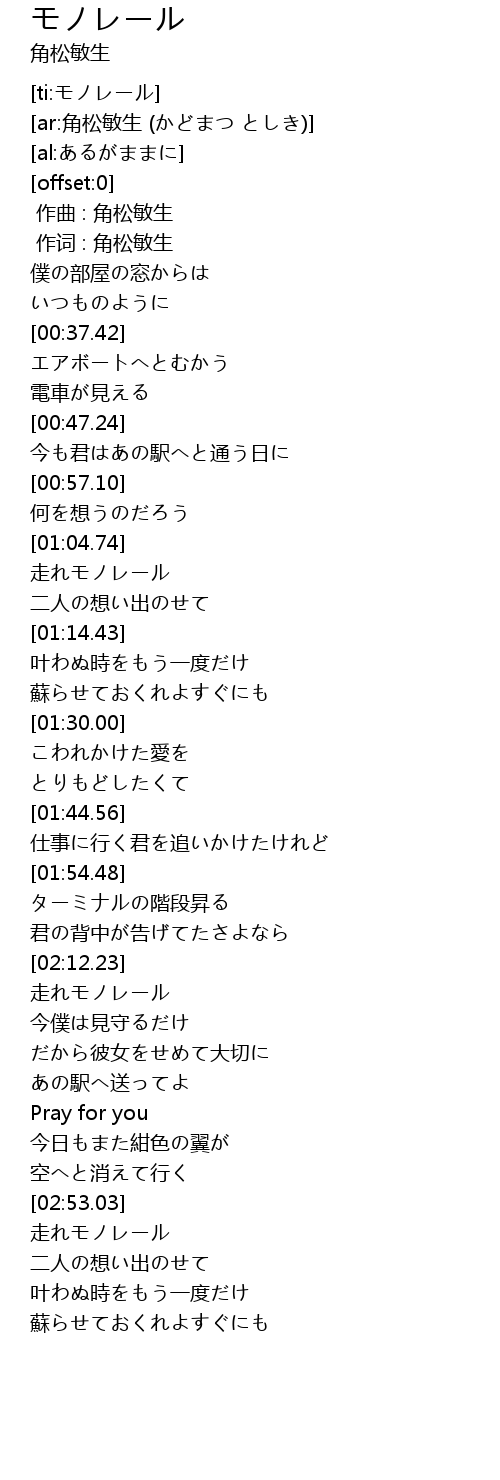 | [03:12.42] | 走れモノレール |