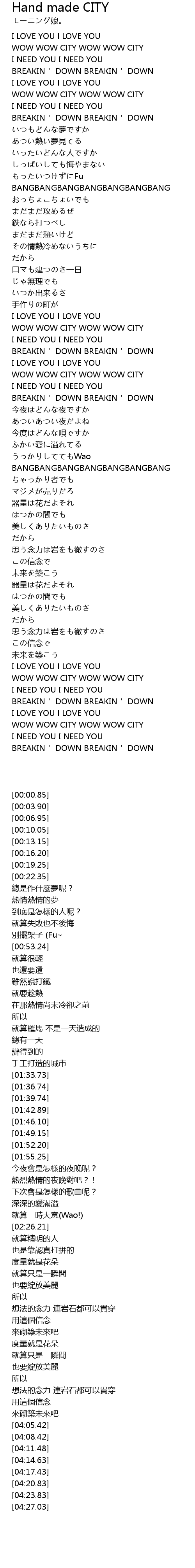 | [04:20.83] | WOW WOW CITY WOW WOW CITY |