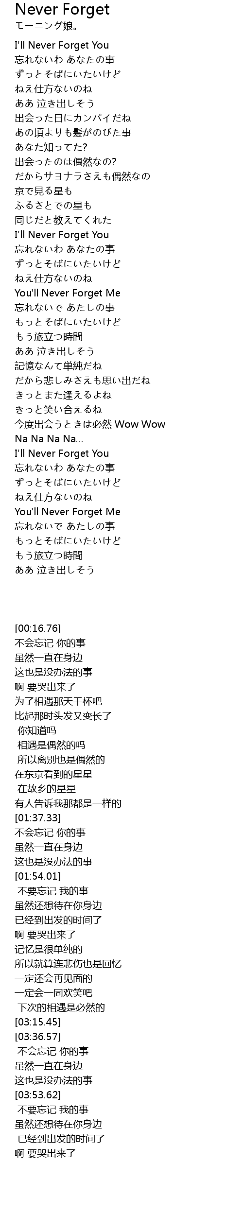 | [00:16.76] | I' ll Never Forget You |