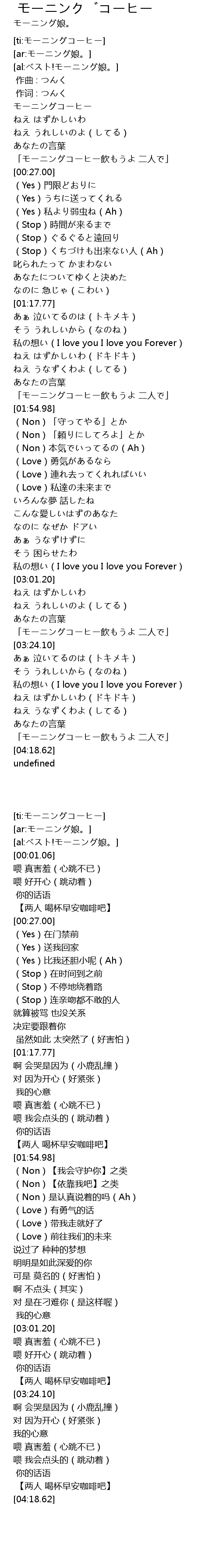 | [03:14.34] | 「モーニングコーヒー飲もうよ 二人で」 |