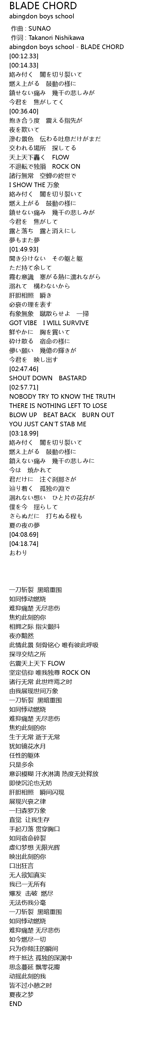 | [00:00.00] | abingdon boys school - BLADE CHORD |