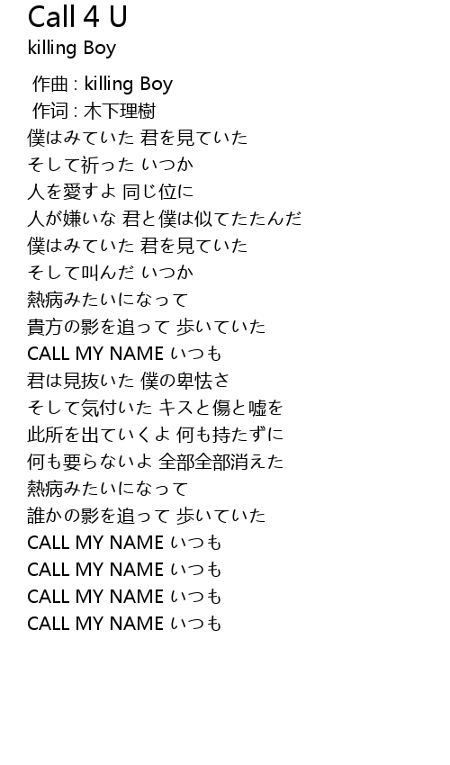 | [02:41.77] | CALL MY NAME いつも |