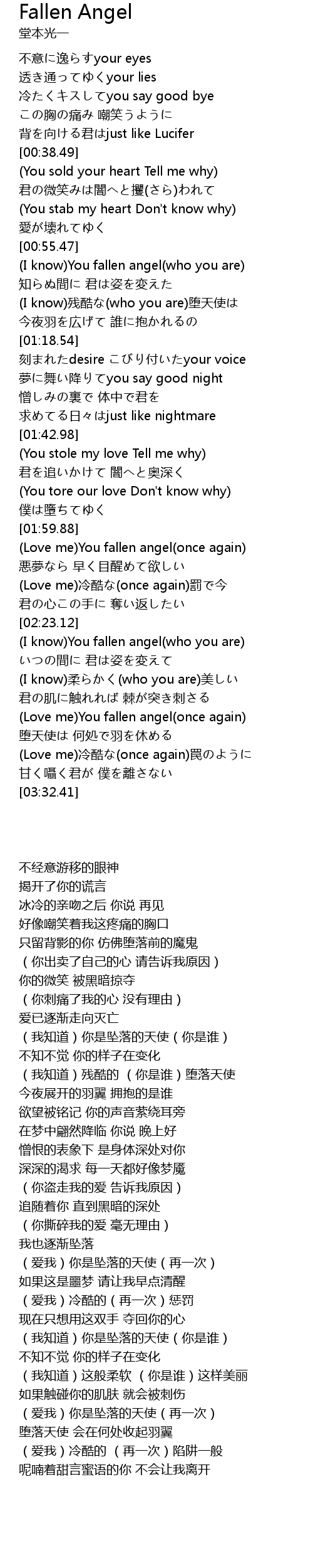 | [02:52.51] | (I know)You fallen angel(who you are) |