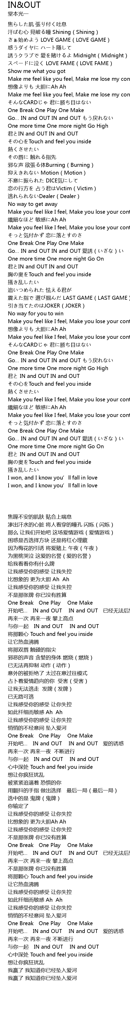 | [03:30.10] | 开始吧… IN and OUT IN and OUT 已经无法后悔 |