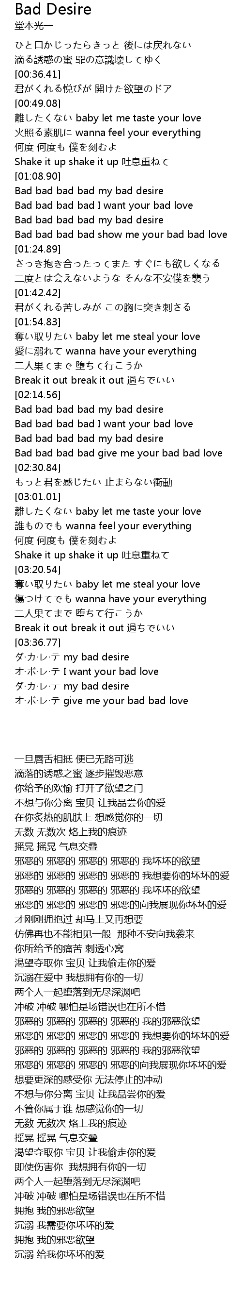 | [02:22.45] | Bad bad bad bad my bad desire |