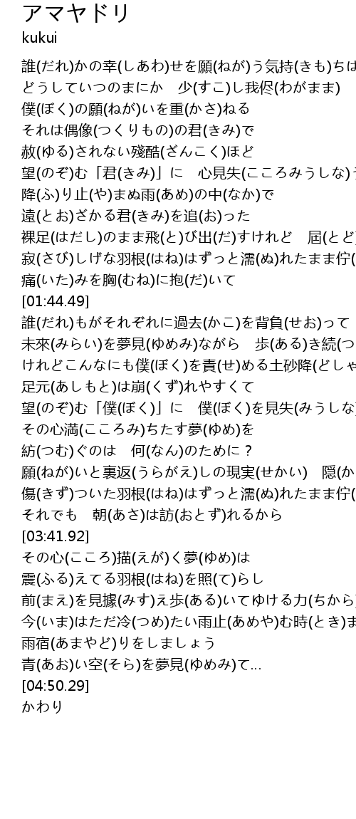 | [04:34.48] | 雨宿(あまやど)りをしましょう |