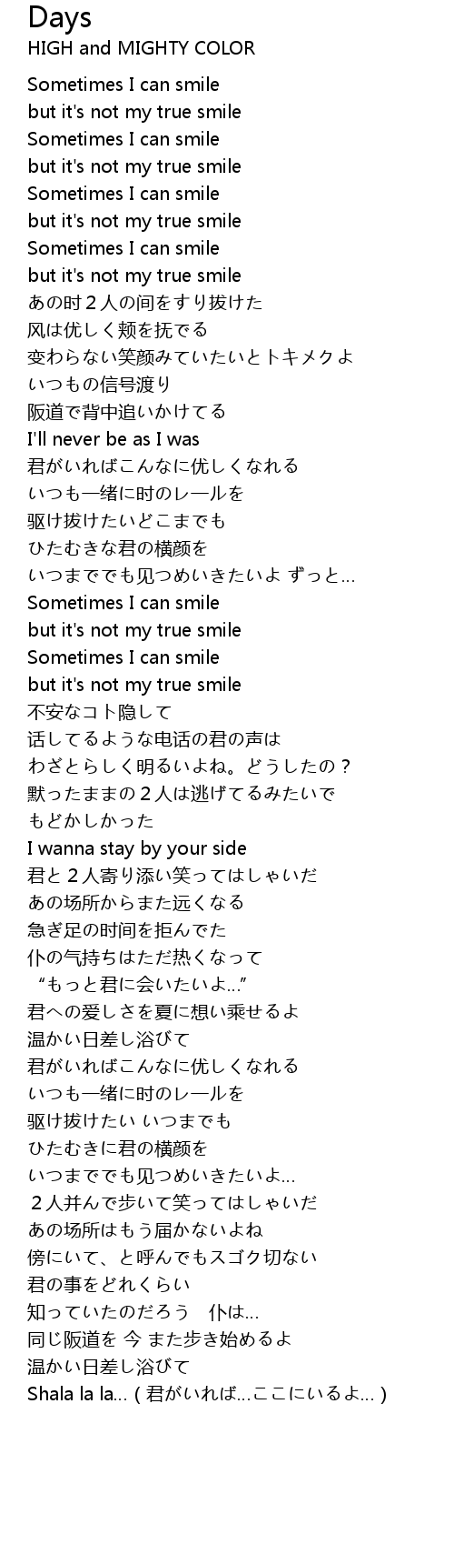 | 歌曲 | Days |