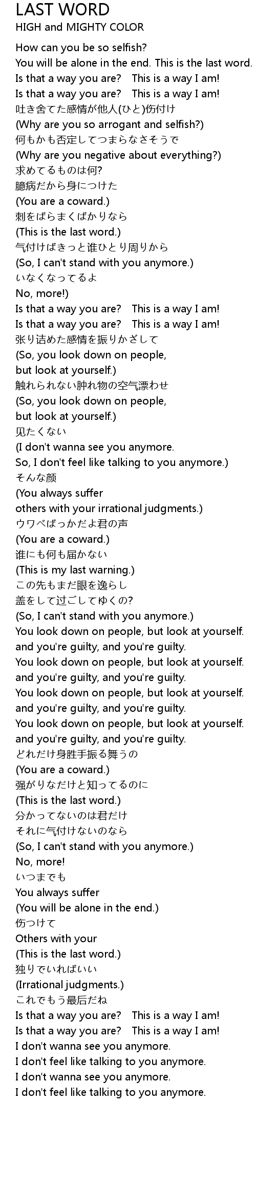 | (Why are you so arrogant and selfish?) | |