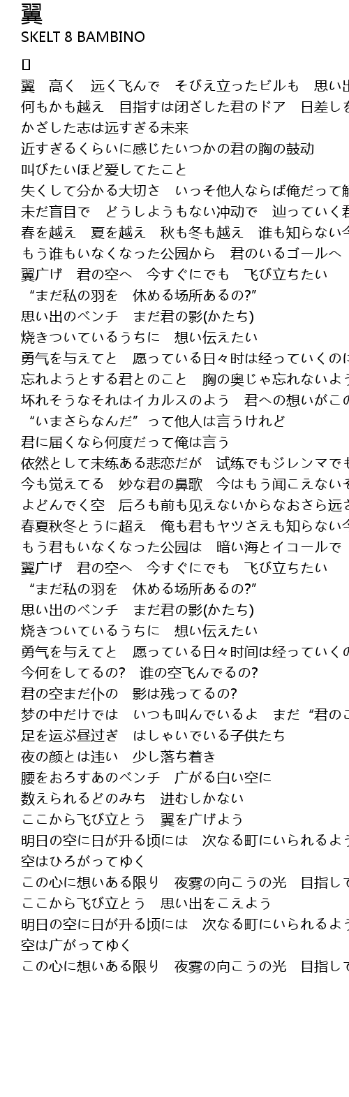 | 翼 高く 远く飞んで そびえ立ったビルも 思い出だった时间も | |