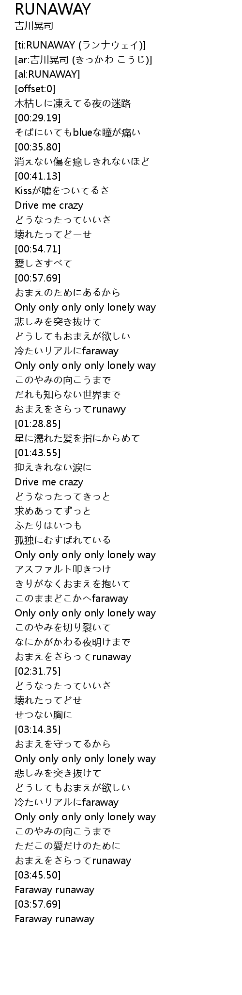 | [ti:RUNAWAY (ランナウェイ)] | |