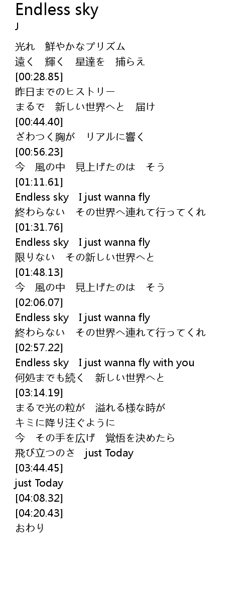 | [03:01.19] | Endless sky I just wanna fly with you |