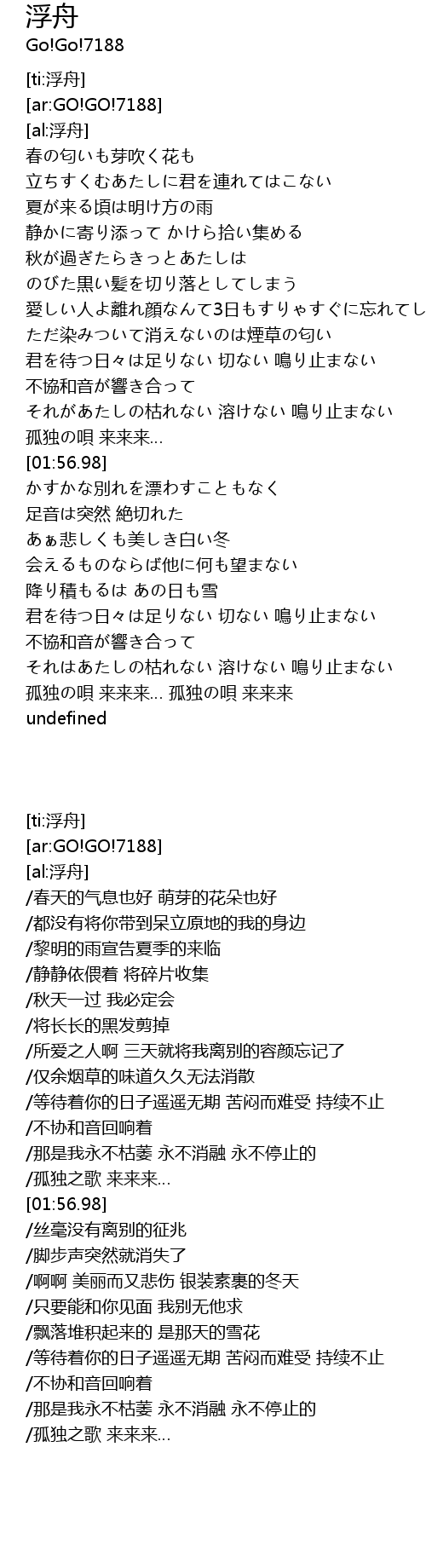 | [03:39.66] | gū dú bei lái lái lái gū dú bei lái lái lái |