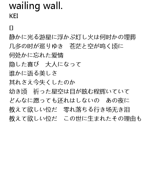 | 教えて欲しい位だ 零れ落ちる行き场无き泪 | |