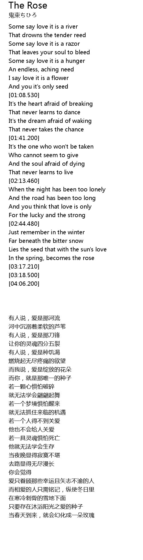 | [03:08.400] | 当春天到来,就会幻化成一朵玫瑰 |