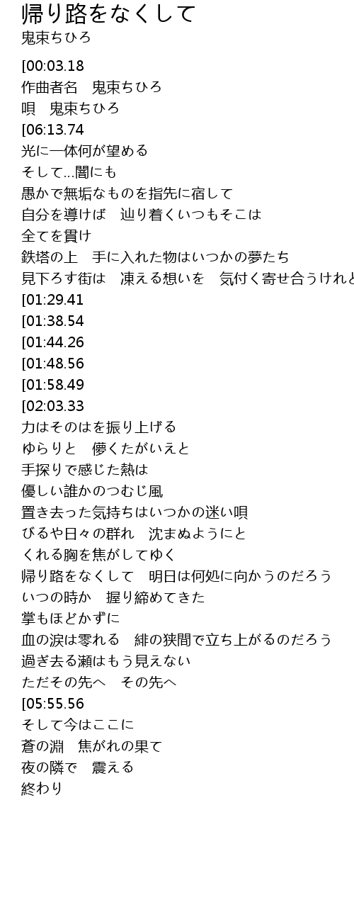 | [04:20.05][00:03.18] | 帰り路をなくして |