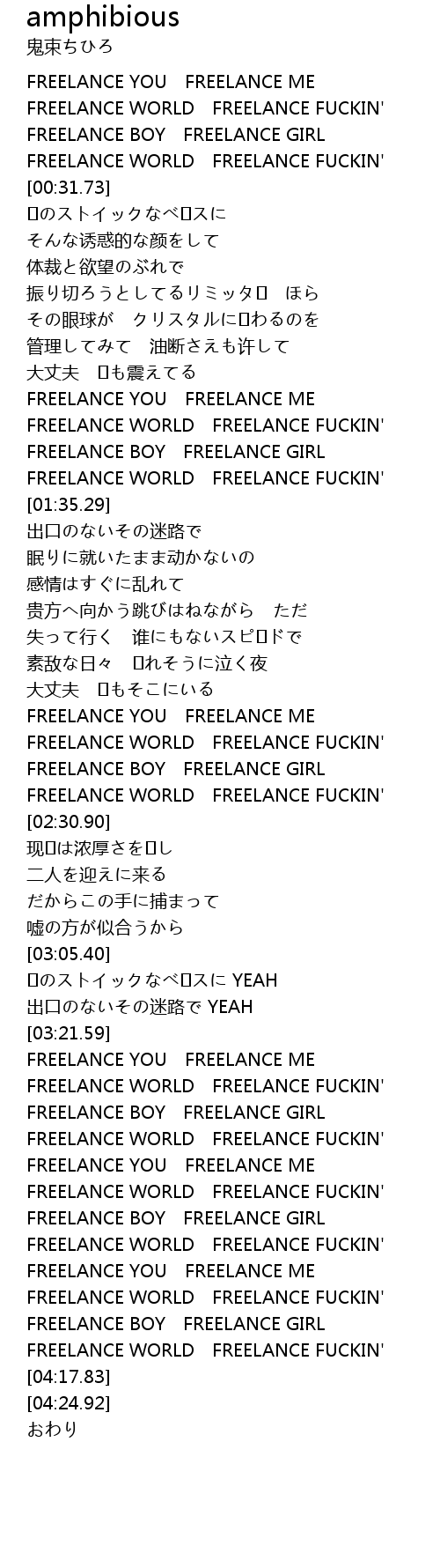 | [03:37.89] | FREELANCE YOU FREELANCE ME |