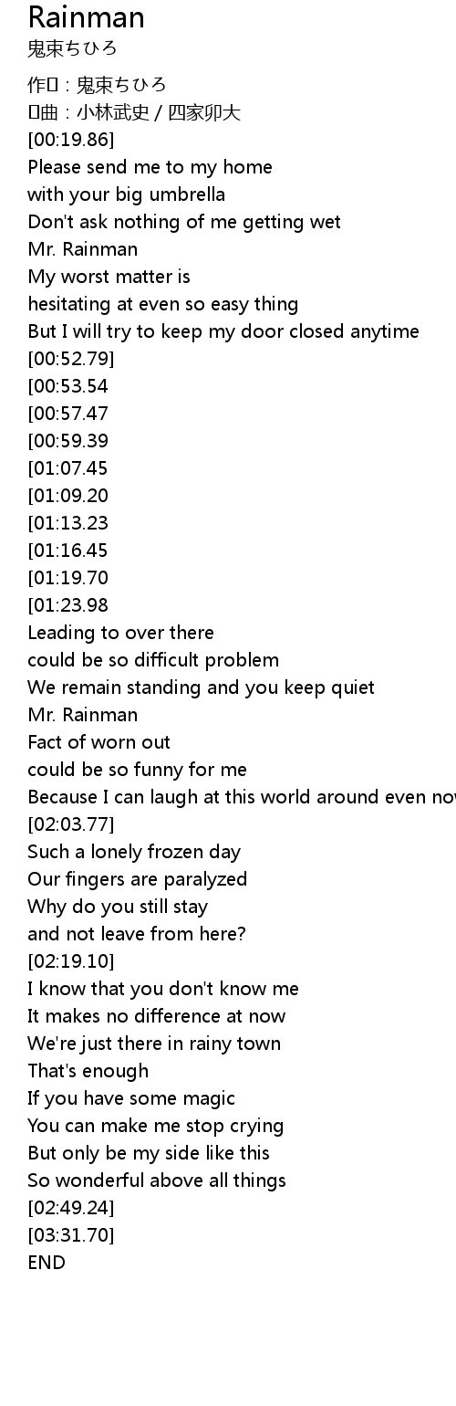 | [03:15.86][01:19.70] | Mr. Rainman |