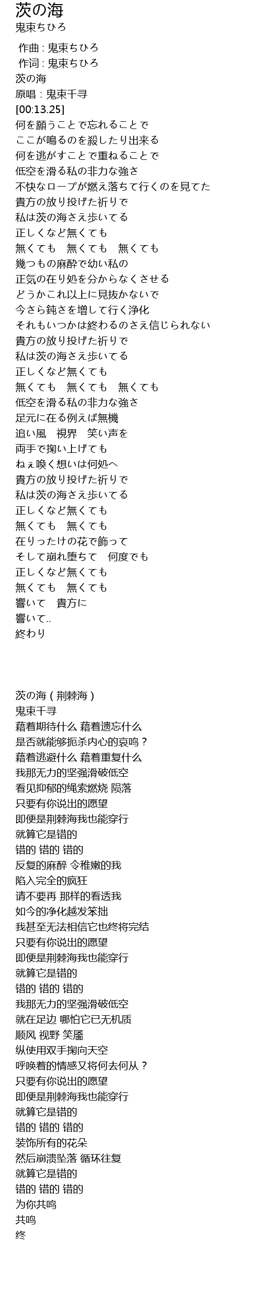 | [00:01.21] | 茨の海(荆棘海) |