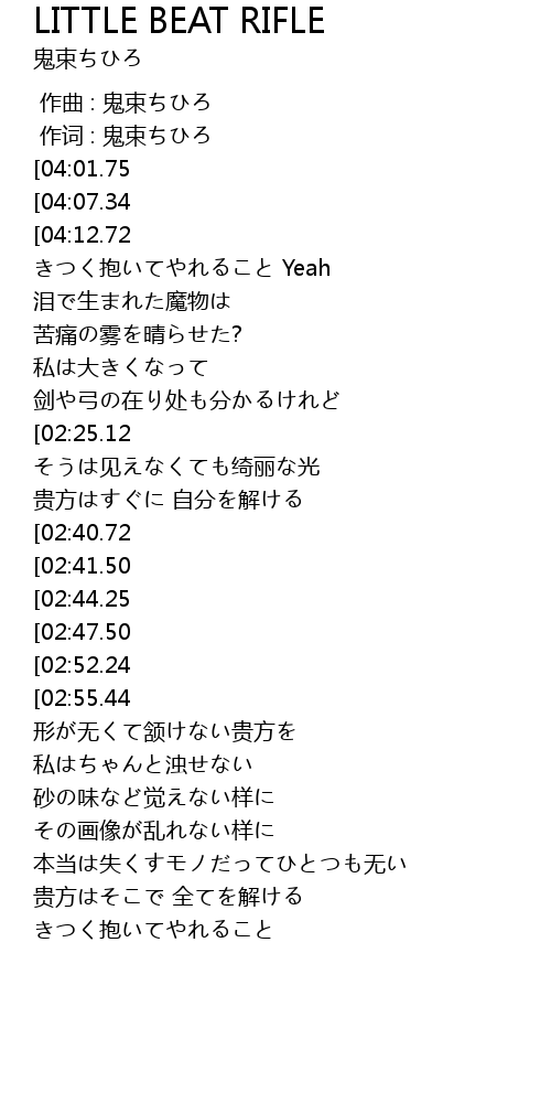 | [00:00.00] | 作曲 : 鬼束ちひろ |